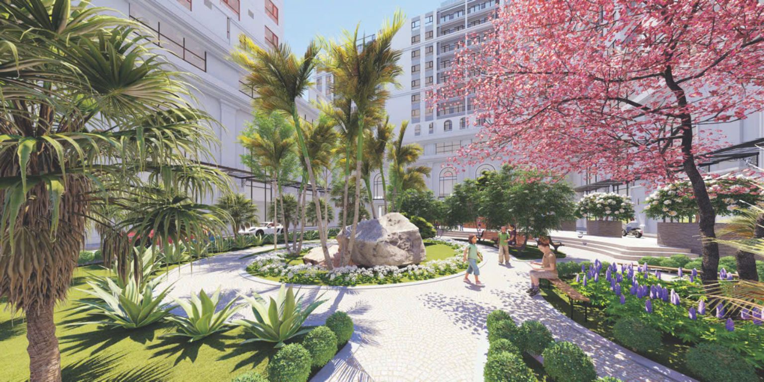 Với mật độ cây xanh lên đến 2.807,05m2 và hệ thống công viên vui chơi giải trí được trang bị các dụng cụng thể dục dưỡng sinh ngoài trời, ngoài ra còn có 1 trung tâm thương mại với công năng 6 tầng được thiết kế riêng biệt: Tầng 1-4 Shophouse thương mại, tầng 5-6 dành cho khu Gym-Spa, Kids Club, BBQ, rạp chiếu phim, hồ bơi bốn mùa được thiết kế theo tiêu chuẩn quốc tế…